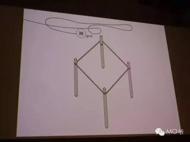 日本人就想出了这样的构造,四根柱子,中间拉上一根绳子,形成了这样的构造、空间。中间形成了一个空的空间,空的容器就有被填充的可能,是不是有一天神就会进入到空的容器当中呢,大家都有这样的想法。就是说有进来的可能性,可能性是非常重要的。