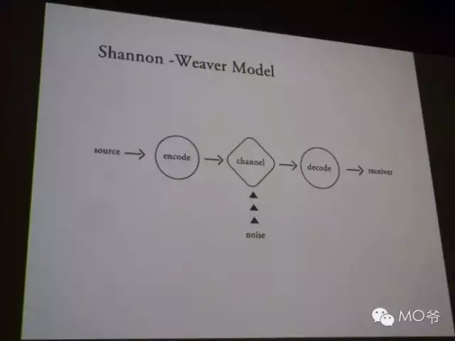接下来我要说的主题叫做“不需要语言”。这就是一个理论,信息源转化成一些符号,通过媒介转化成另外一种符号传递给对方,信息是这样传达出去的。我们像平常打手机的时候,我们跟对方说话是以声音符号的形式发送出去,再通过电波传递到另外一个手机然后再传到对方的耳朵里面,是这样的传递过程。比如说我要跟对方说“我爱你”如果有一些收讯不好或者其他的条件这个信号对方无法接收,可能收到了对方也会持怀疑的态度,到底是不是这样的信息。