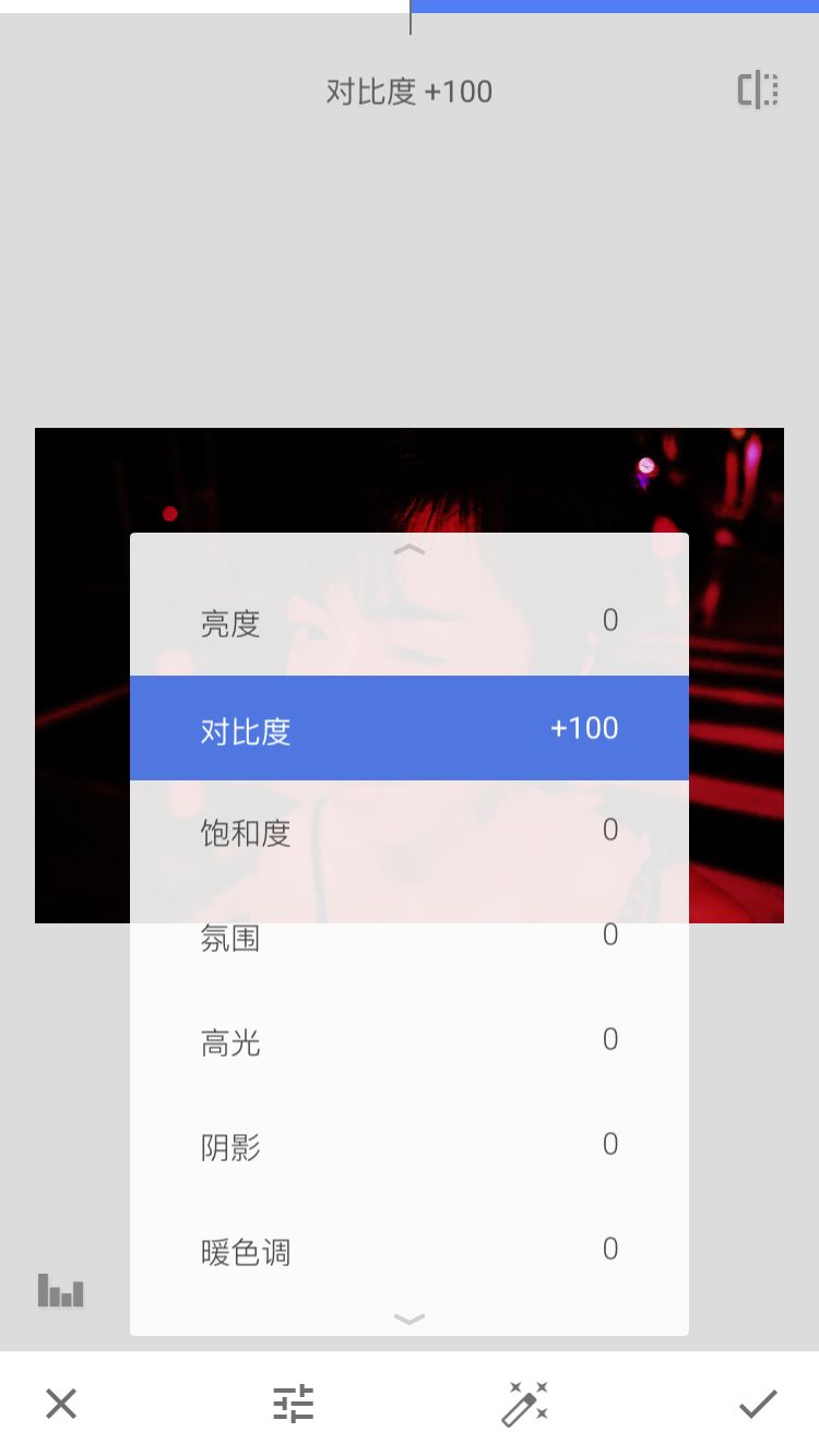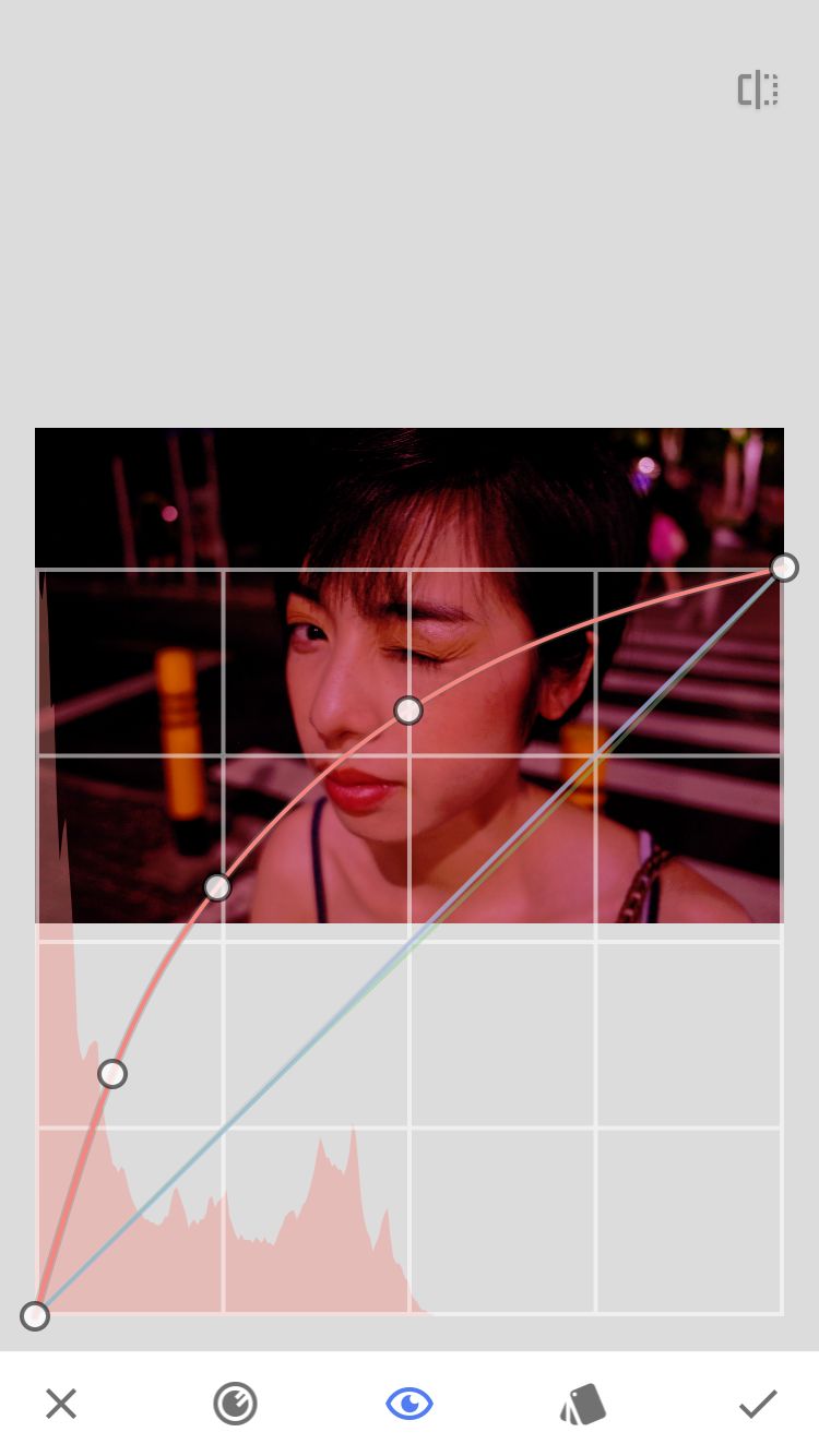 下面我用手机软件snapseed,演示怎么将一张普通的夜景人像,修成红色电影色调。