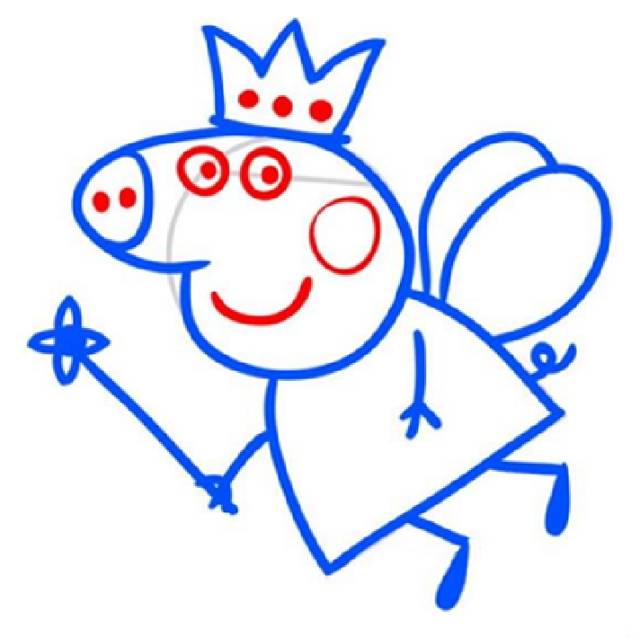 今天我们将学习如何画一个飞行的小猪!还有她拿在手里的魔杖和头上的皇冠。她呀,就是大名鼎鼎的粉红猪小妹佩奇呢,因为她想要飞行的梦想十分的强烈,所以在扮演一个可爱的小仙女呢。