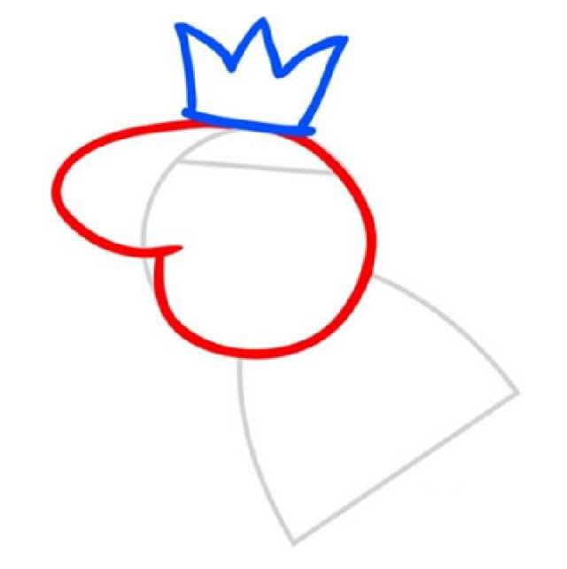 第七步:画出猪小妹的眼睛,鼻子,嘴巴,脸颊,和王冠上的小圆点