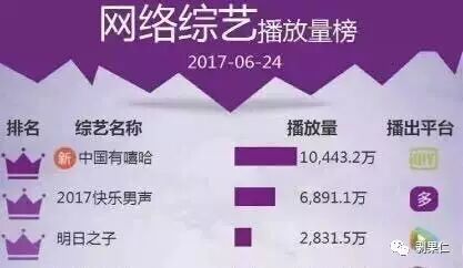 《中国有嘻哈》第一期在爱奇艺的点击量便突破了一个亿。而此时,提前一天播出的《奔跑吧兄弟》点击量也只有9000多万。足以说明它的影响力。
