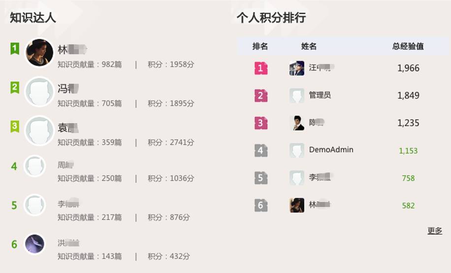 积分、财富、知识评测、积分排行、使用排行等等,推动用户对于知识分享及使用的积极性;业务知识的沉淀、学习完成后的心得体会、工作案例的分享等等,实现知识管理平台的自运营。
