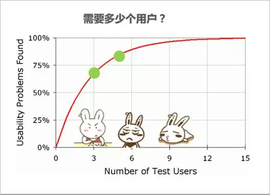 a.找多少用户。对于快速的可用性测试,到底应该找多少用户来测试,说到这里,可以参考Nielsen的这张经典图表,可能对于用户数量业内有很多的争议,我个人的项目经验来说,一般发现产品的重大问题的话,6~8个用户足够了,而对于验证型的测试,可根据测试结果及时调整数量,一般也会控制在12人左右,基本上符合了Nielsen的理论。