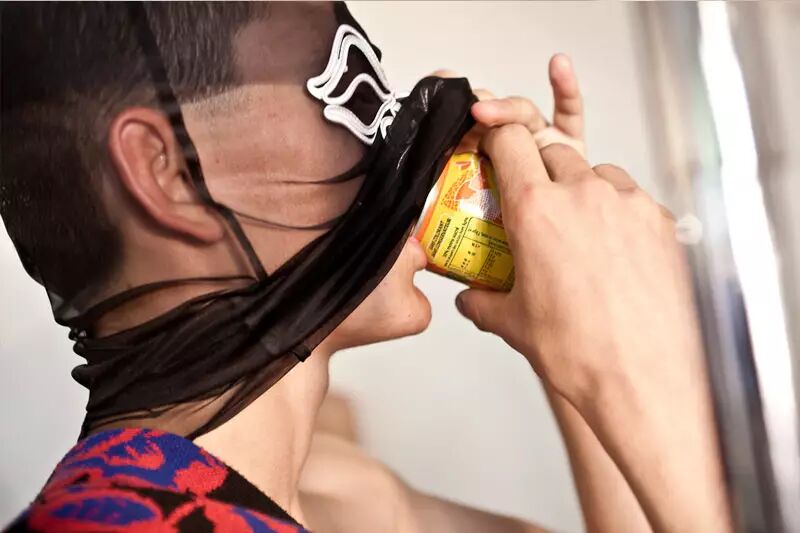 不过,模特对这个面罩应该是极其喜爱的,任何时候都不舍得把它摘下: