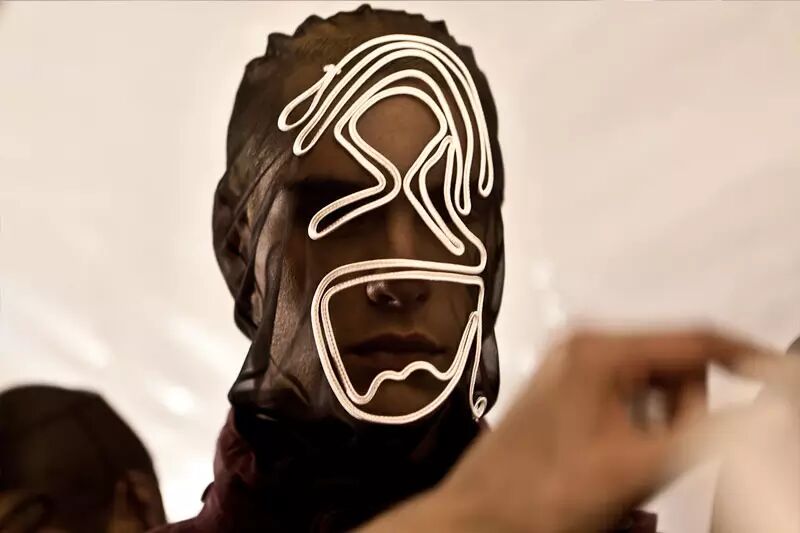 其实,Julien David在头套上下了不少心思,一笔成画的功夫,抽象的表达了每套设计时的喜怒哀乐。
