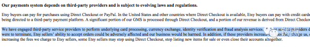 而他们也表达了对主要支付方式收第三方牵制的顾虑(上方为Shopify,方为Etsy)。