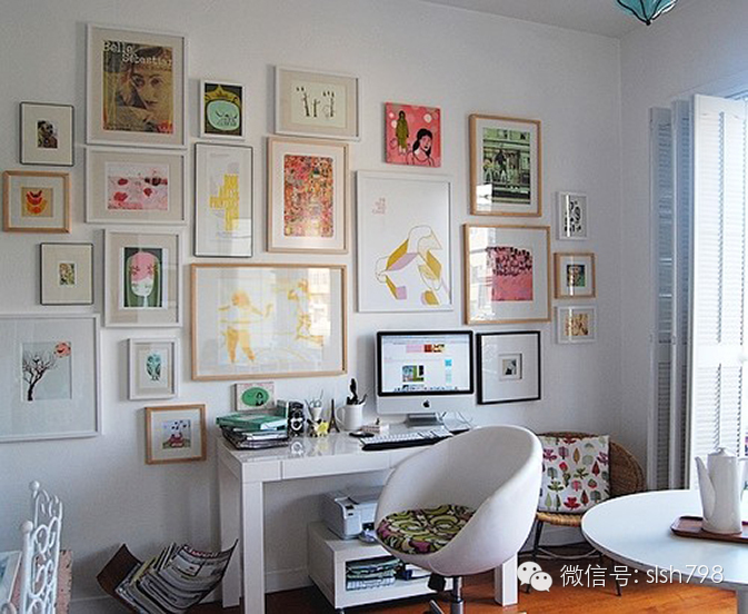●如果相框偏深色,同时框和相片之间的留白位置较多的话,会比较容易令人留下深刻印象。相反如果是白色相框和较窄的留白位置,那给人的印象就比较轻了。如果你想用大量相片来装饰房子,那每一个画框就不要太突出比较好。如果想看上去感觉更自然的话,可以试一试一些没有相框的挂画方法?例如是用夹子之类吧!