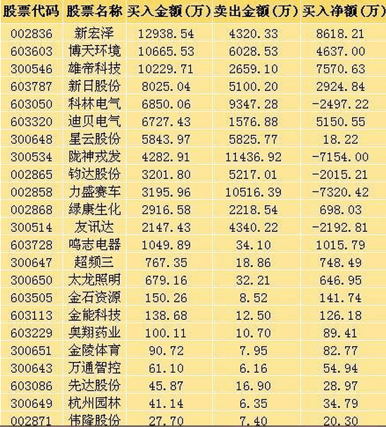 昨日,26只次新股登龙虎榜,根据公布的交易数据显示,新宏泽、博天环境、雄帝科技3股获逾亿元资金买入。多空(买卖)主力的博弈结果来看,26次新股主力净流入11.47亿元,多方吸筹意愿较强。其中,新宏泽、博天环境、雄帝科技、新日股份、迪贝电气、鸣志电器等股都明显是由多方主导。