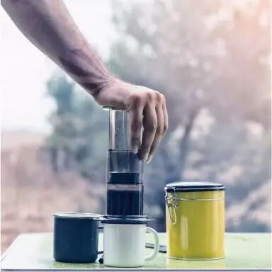 结构类似于注射器。在“针筒”内放入研磨好的咖啡和热水,压下推杆,咖啡就会透过滤纸流入容器内。