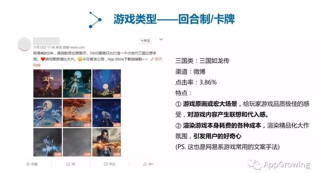 1)微博渠道可挖掘受众与游戏相似的粉丝群,进行定投;