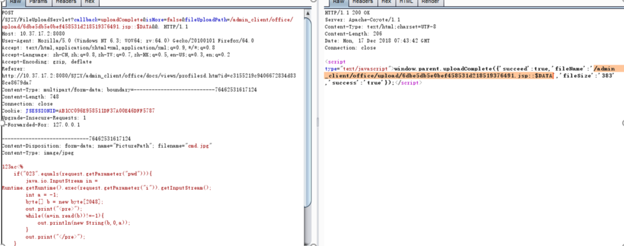 由于服务器使用了windows系统,会自动去掉不符合规则符号后面的内容,因此成功打到一个jsp的shell地址。